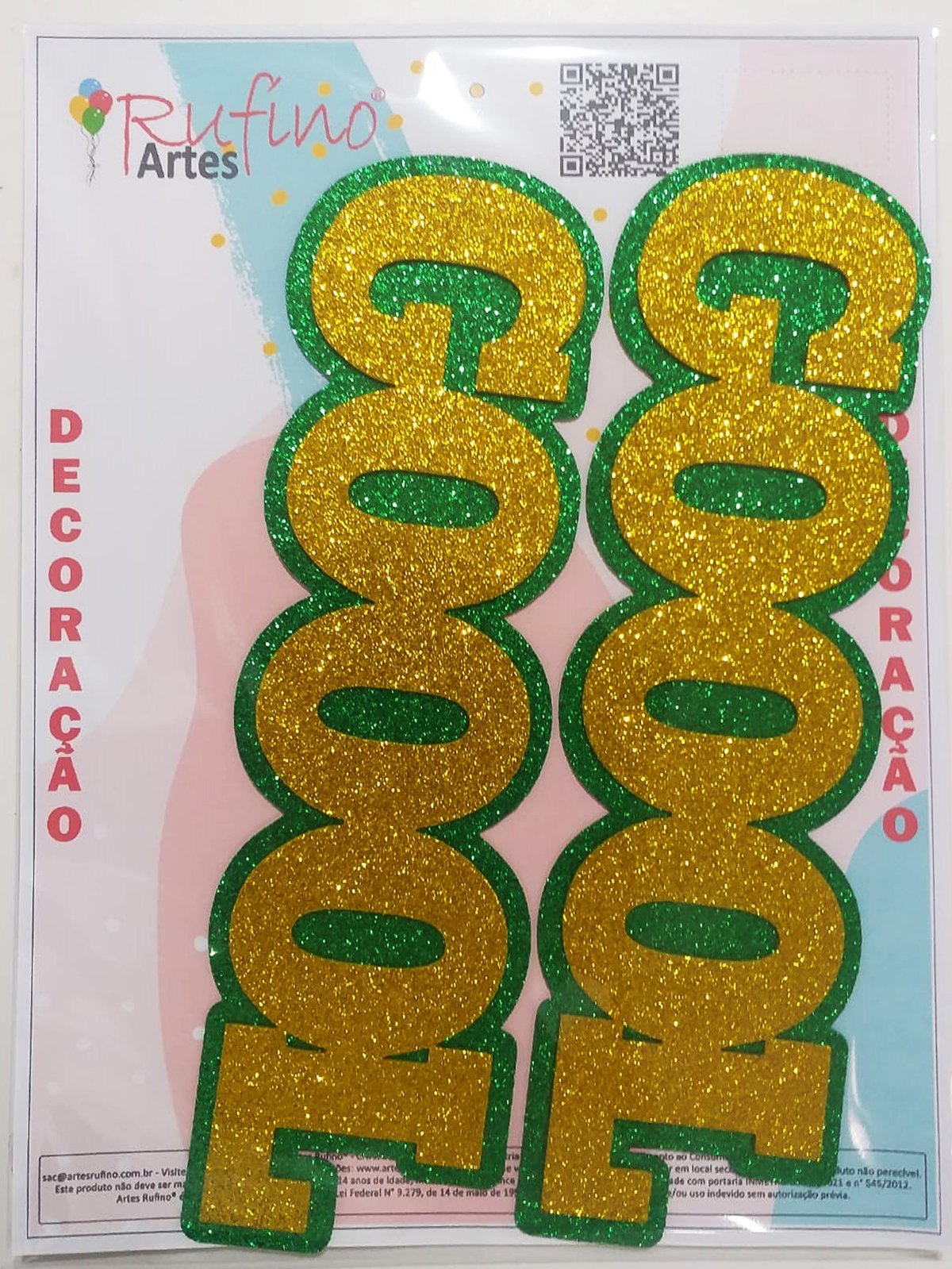 Decoração Futebol Goool Verde/Amarelo – 2 Und – 27×7,5 Cm